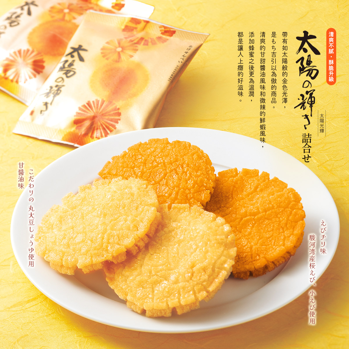 太陽光輝仙貝 醬油仙貝 辣味鮮蝦仙貝 日本仙貝