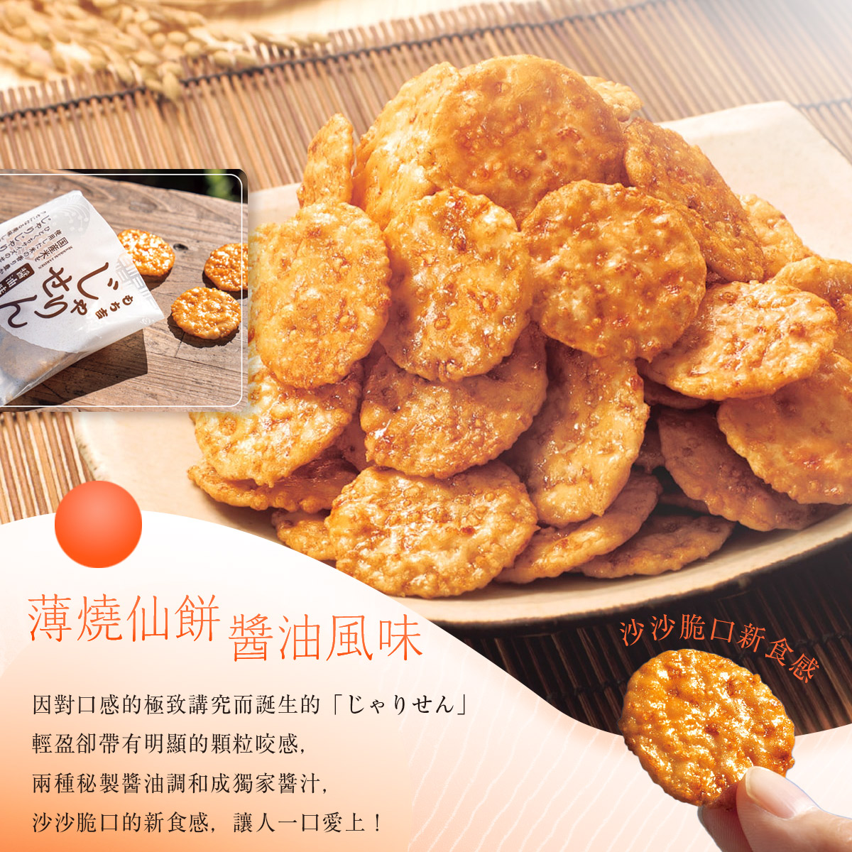 薄燒仙餅 醬油風味雙醬油秘製・顆粒酥脆的薄燒仙餅