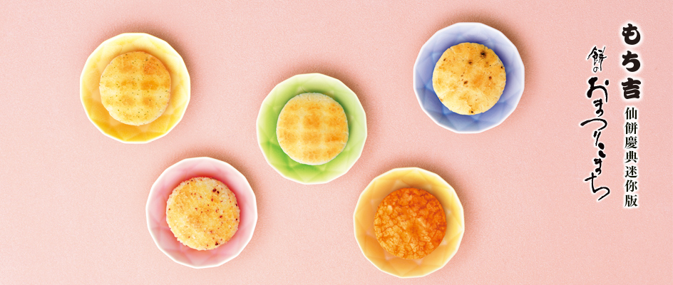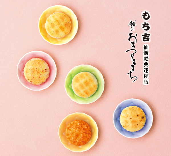 仙餅慶典迷你版系列源自吉仙餅(もち吉)人氣No.1代表作「仙餅慶典」,將原本直徑約8公分的經典仙貝縮小為約6公分。雖是迷你尺寸,但每一枚仍完整呈現厚實、酥脆、輕盈飽滿的口感,與原尺寸如出一轍,兩三口的迷你份量更添輕巧樂趣。