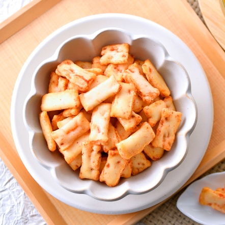 もち吉一直以來堅持著製作仙餅和米菓的米都必須是日本國內生產的米。日本國產米具有獨有的濃郁風味,仙餅與米菓烘烤時的蓬鬆度恰到好處,口感酥脆。咬下的那一刻,瞬間就感受到稻田裡稻穗隨風搖曳的景色,是令人放鬆而會心一笑的味道。
