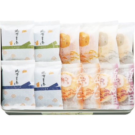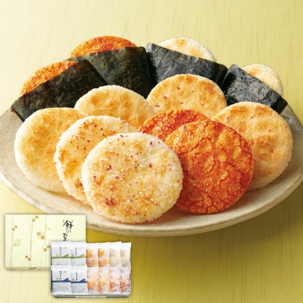 仙餅慶典(經典鹽風味 6 枚、經典醬油風味 6 枚、鮮蝦風味 6 枚、砂糖梅子風味 5 枚); 御海苔卷(山葵風味 5 枚、經典醬油風味 5 枚)
